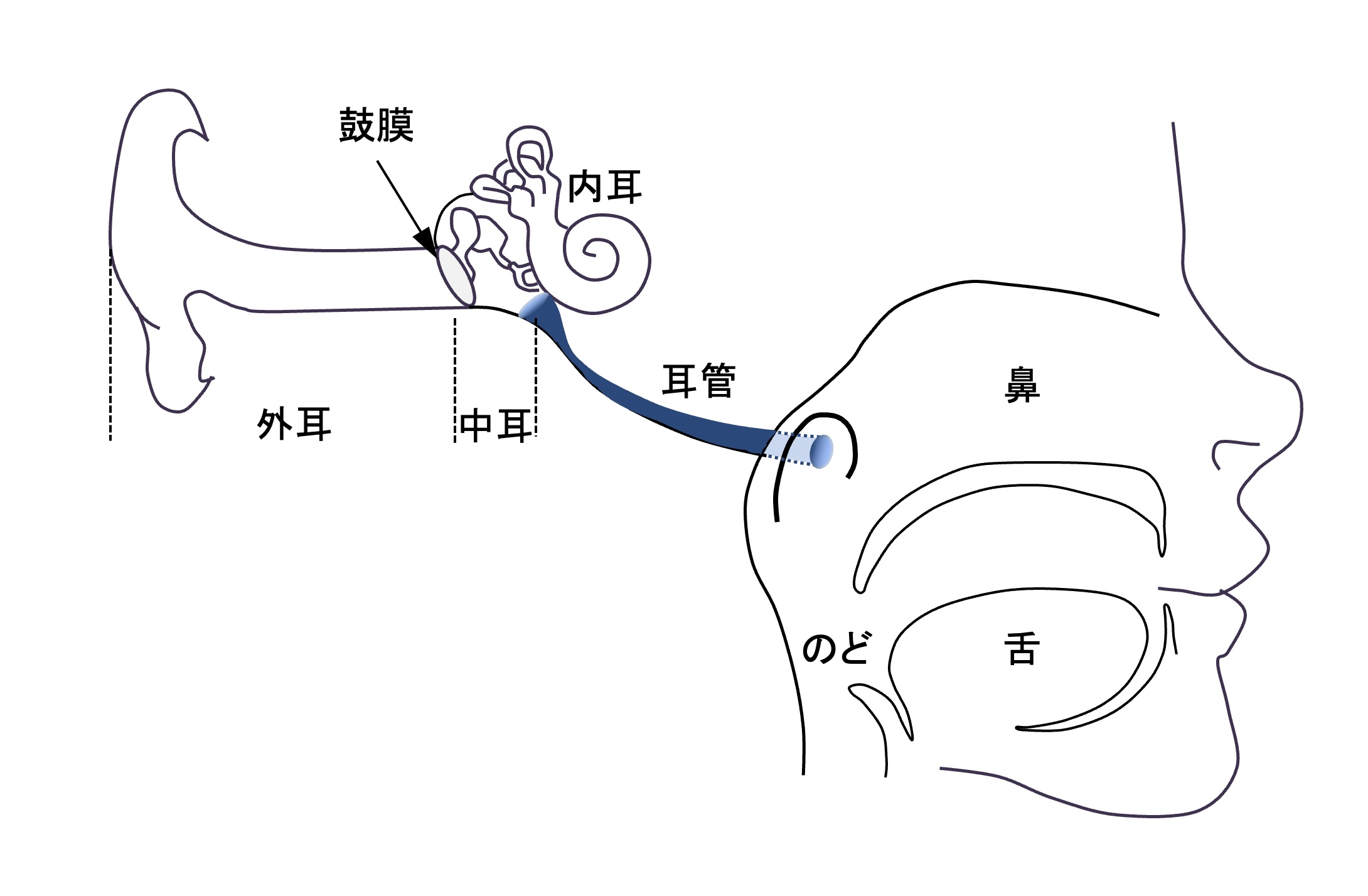 - 中耳にたまった余分な分泌物を鼻の奥に流し出す排出路。